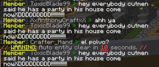 Name of offender: ToxicBlade99 Name of offense: caps lock ,spam and flood Server: semi-vanilla Date and time: right now Evidence: tagging: @aelarmaly @cl0se5 @Jessicaaa808 @Noblesword @Reznex @dash_baxter @jonsey @xDarkKillerZ @SKTtheTroller